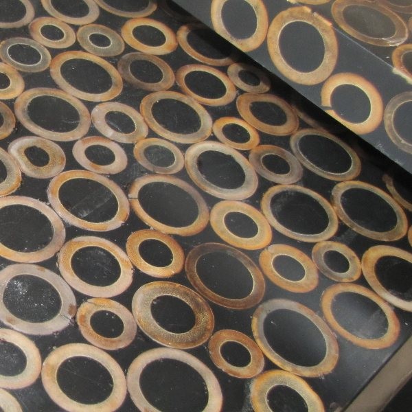 Table gigogne en paire en bois bambou et resine. Motif rond. 50 x 40 h. 55