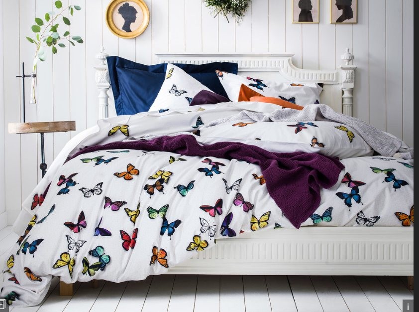 Housse de couette Thais multi, blanc motifs papillons 160 x 210 cm Essix