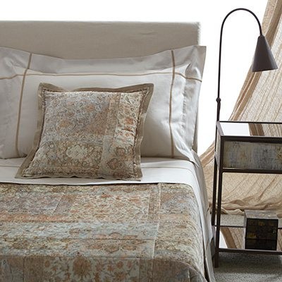 Couvre-lit KERMAN 270 x 270 cm motifs cachemire tons de beige, piqués en carrés , Mastro Raphaël
