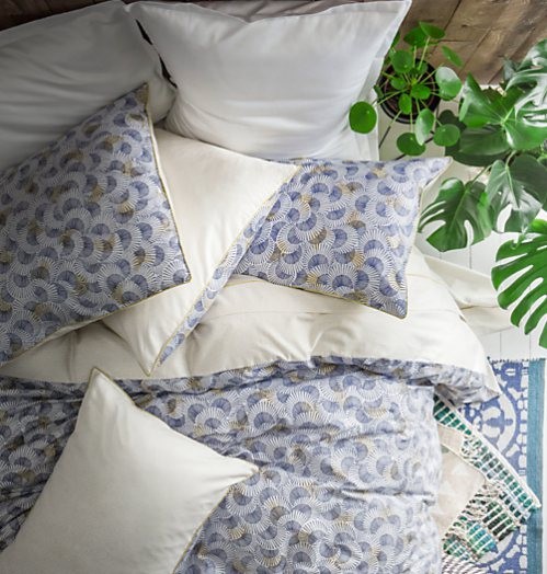 taie d'oreiller Tama Song bleu-blanc-jaune, dim.50 x 75 cm, lavable à 60°, Essix