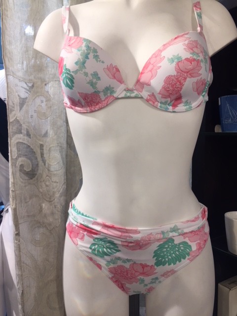 Bikini JOYCE Peony T3 (38) blanc avec motifs fleurs roses et vert d'eau, Manuel Canovas, lavable à 30°, 87% polyamide, 13% elasthane,