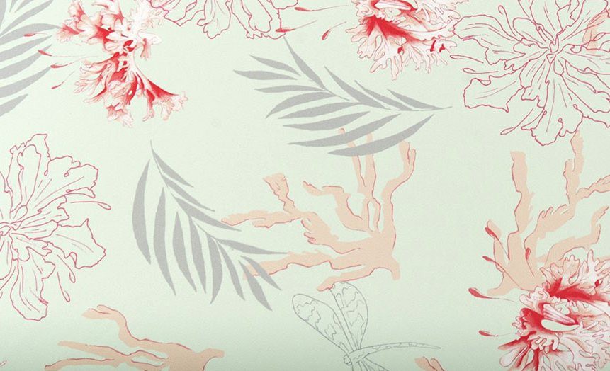 Robe DELIA Lulla T6 (44) vert pâle motifs corail orangé, Manuel Canovas, 100% viscose, lavable à 30°