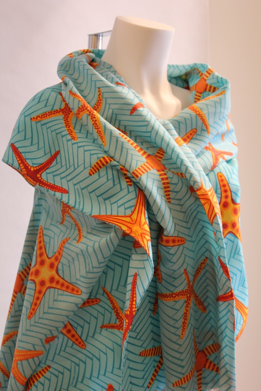 PAREO bleu turquoise et étoiles de mer Manuel Canovas