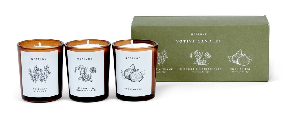 Mélange sur mesure de cire durable de noix de coco, de soja et de colza, nos bougies sont fabriquées par une petite équipe d'experts basée dans un bourg du Hampshire. Les parfums de ce trio évoquent un jardin de campagne britannique : La figue anglaise, douce mais fraîche, avec un soupçon subtil de rose, de bois et d'ambre ; la campanule et le chèvrefeuille, qui mêlent des notes florales classiques à une base verte et terreuse ; et le romarin et le thym, une fusion d'herbes rafraîchissante et citronnée.
