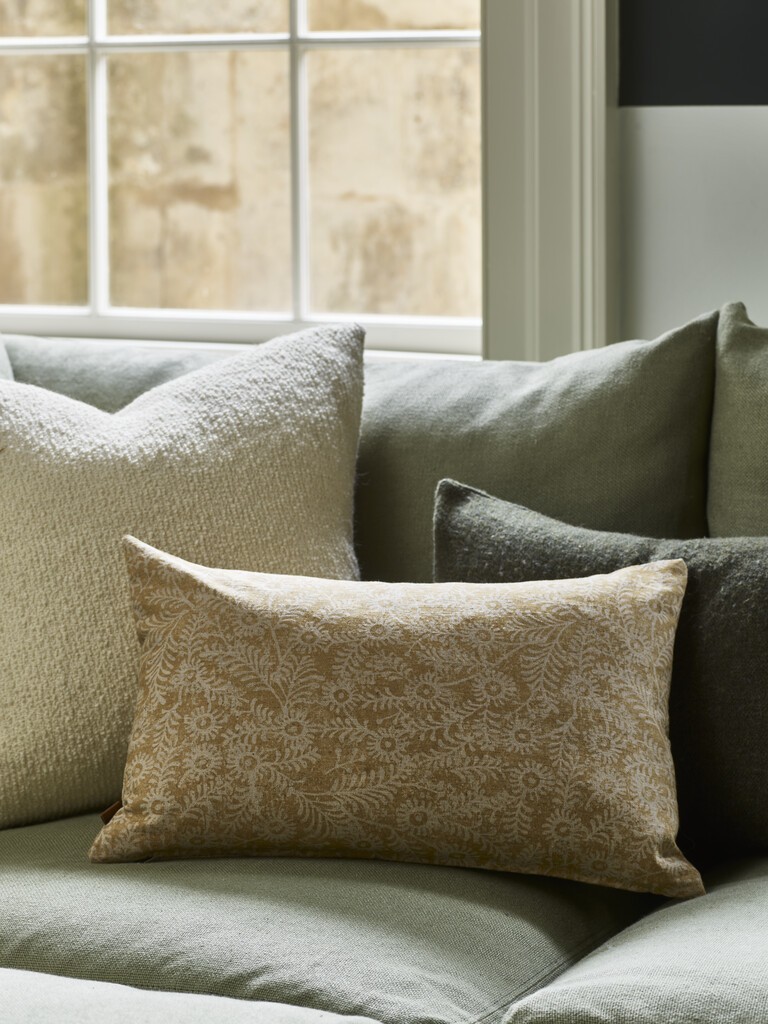 Inspiré par la vaisselle Spongeware du XIXe siècle, le motif de chardon d'Orla est imprimé numériquement en Grande-Bretagne sur une housse de coussin en lin et coton naturels mélangés. Utilisé en point de convergence décoratif sur un lit ou seul sur un fauteuil, par sa couleur vibrante, ce coussin rectangulaire apporte de la chaleur à une pièce.