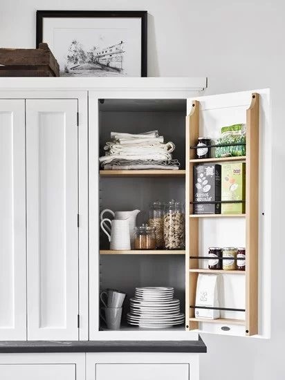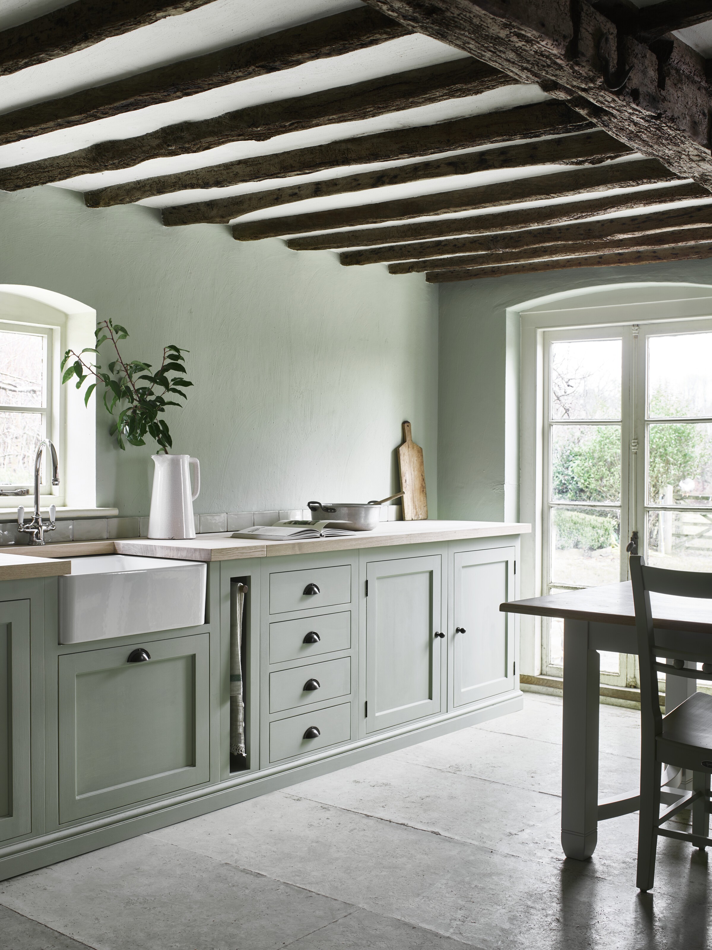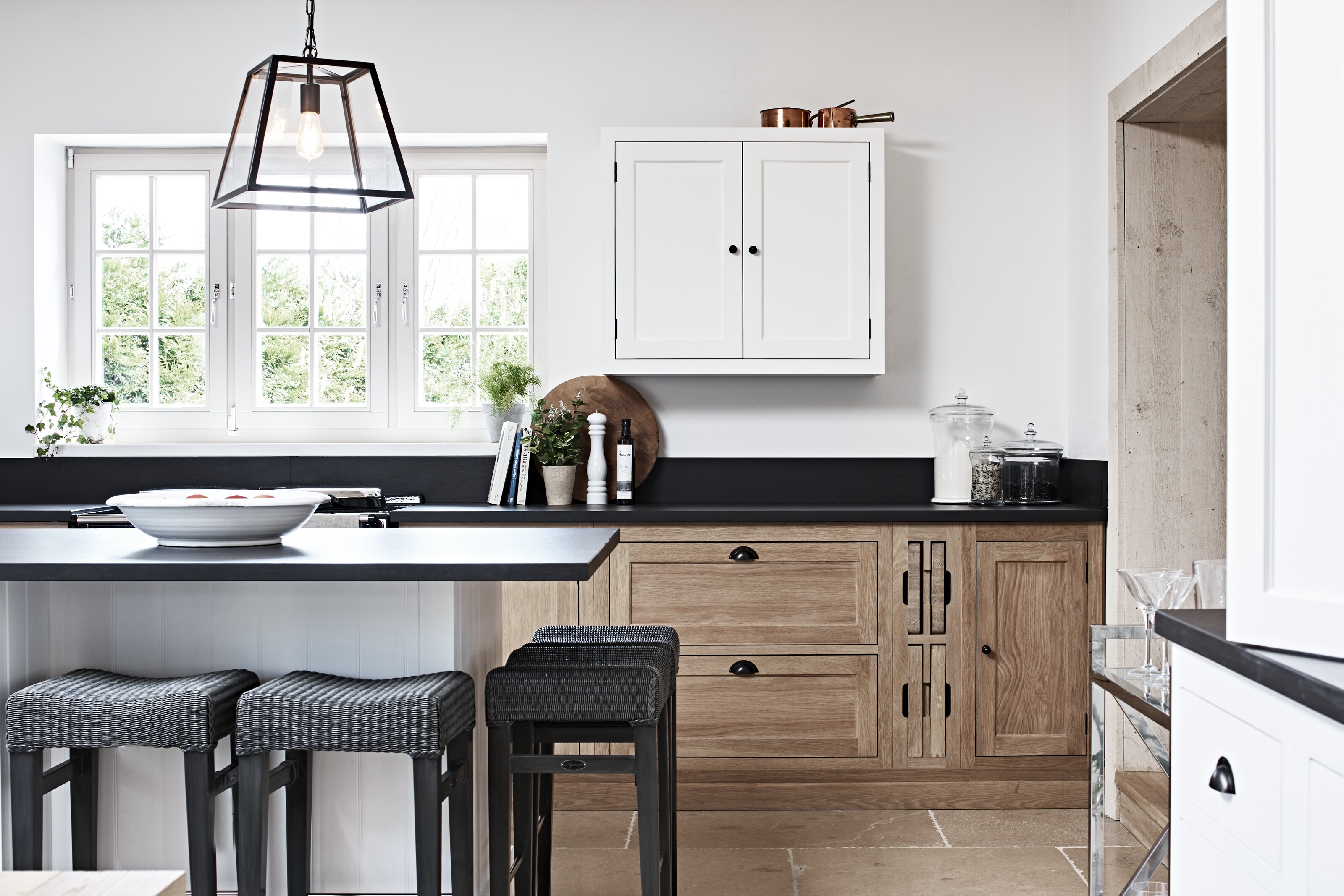 La cuisine qui peut être entièrement en chêne massif, entièrement en bois peint ou une combinaison des deux.