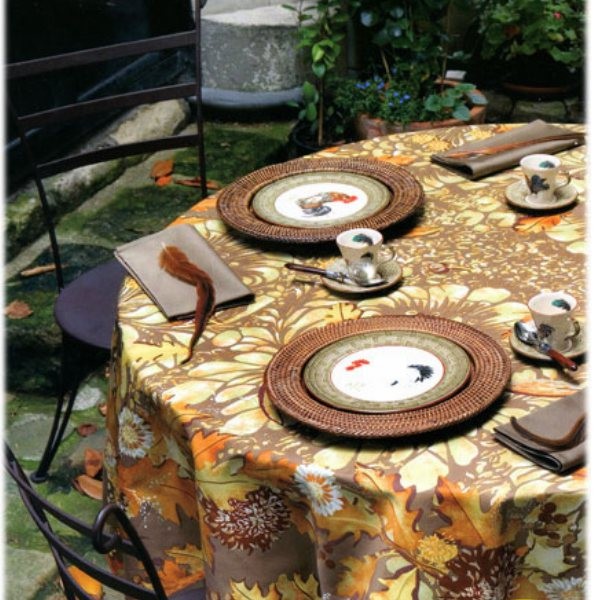 Nappe Jardin d'hiver col.2 brun, dim.170x170cm, satin 100% coton, lavable à 60°, fabriqué en France, de Beauvillé