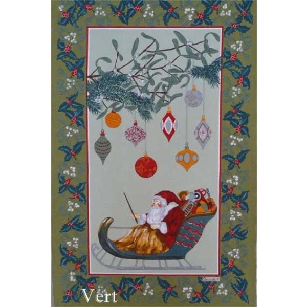 Torchon Traineau col.vert, dim.50x80cm, 82%coton 18%lin, fabriqué en France