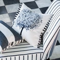 Coussin Linnaeus col.crème avec impression arbre noir, dim.50x50cm, intérieur plume, housse avec fermeture-éclair, de Designers Guild