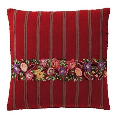 Coussin Sana col.rouge, dim.50x50cm, 1 face avec motifs floraux brodés, 1 face rayée, avec fermeture-éclair, de Pierre Frey