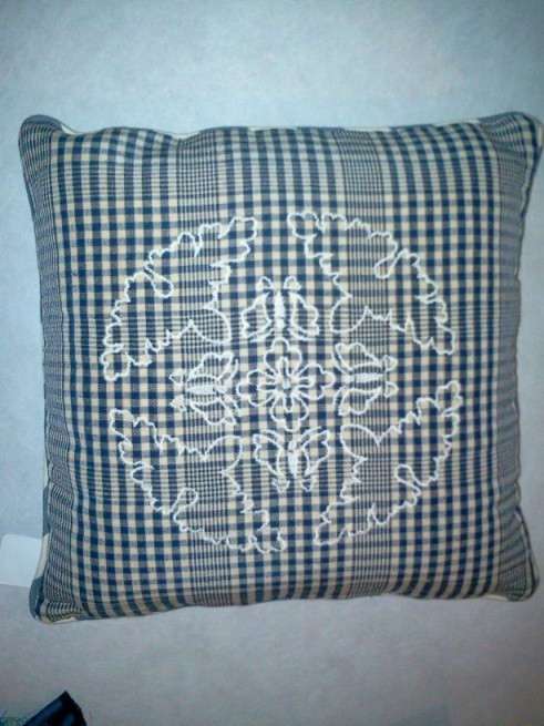 Coussin à carreaux vichy col.bleu avec broderie, dim.40x40cm, finition avec fermeture-éclair, de Pierre Frey