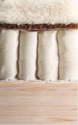 • Structure à ressorts ensachés à la main dans leur poche en calicot