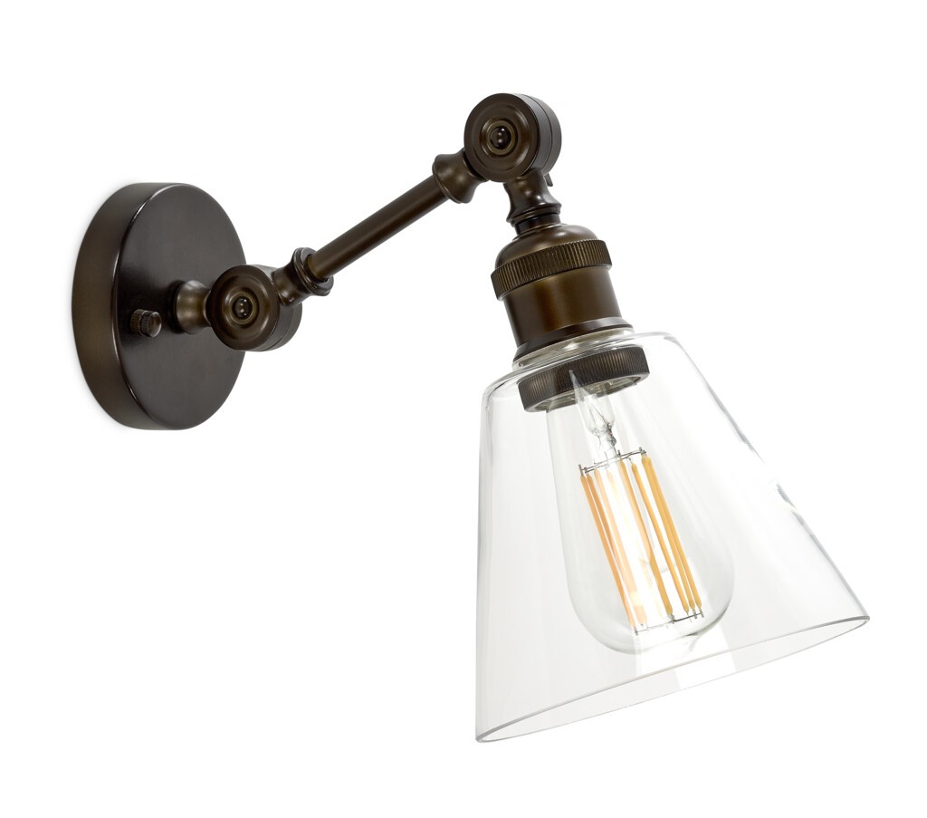 Keats Single Arm Wall Light- Bronze arm and Glass shade