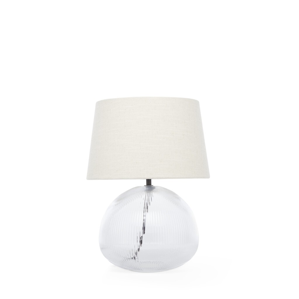 La lampe de table Malton est fabriquée en verre cannelé pour une lumière doucement diffuse. Elle est accompagnée d'un abat-jour en lin assorti (que vous pouvez échanger si vous le souhaitez) et d'une quincaillerie industrielle au fini noir-bronze vieilli. Choisissez parmi deux formes organiques et placez-la sur une table console ou une table de chevet.