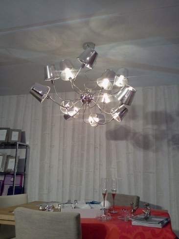 Lustre Now's Home 6 lampes flexibles. Abat jours argent. Diam. 60 cm