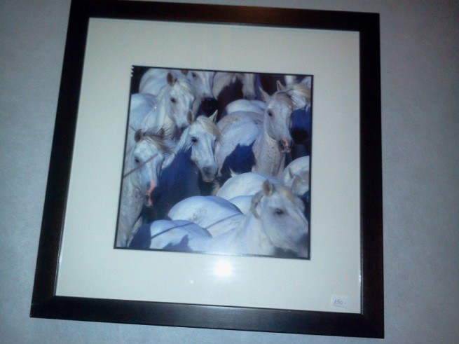 Tableau photo de chevaux blanc, dim.39x39cm, avec cadre bois foncé (wengé)