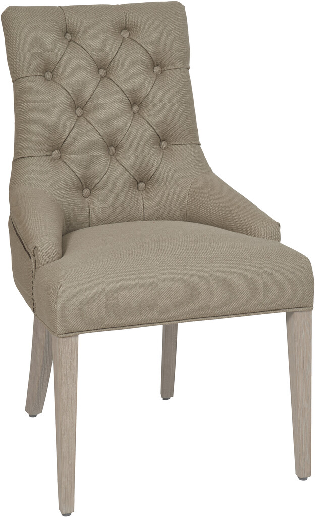Cette chaise évoque le luxe des salles à manger Régence aux XVIIIe et XIXe siècles. Son dossier capitonné lui confère une élégance raffinée, tandis qu'un contour clouté souligne la courbure du dossier. Disponible dans les tissus les plus raffinés, allant du lin au velours, Henley apporte une sophistication intemporelle à la salle à manger.