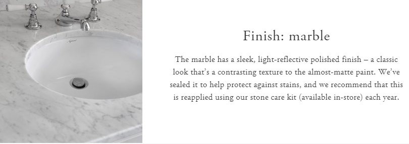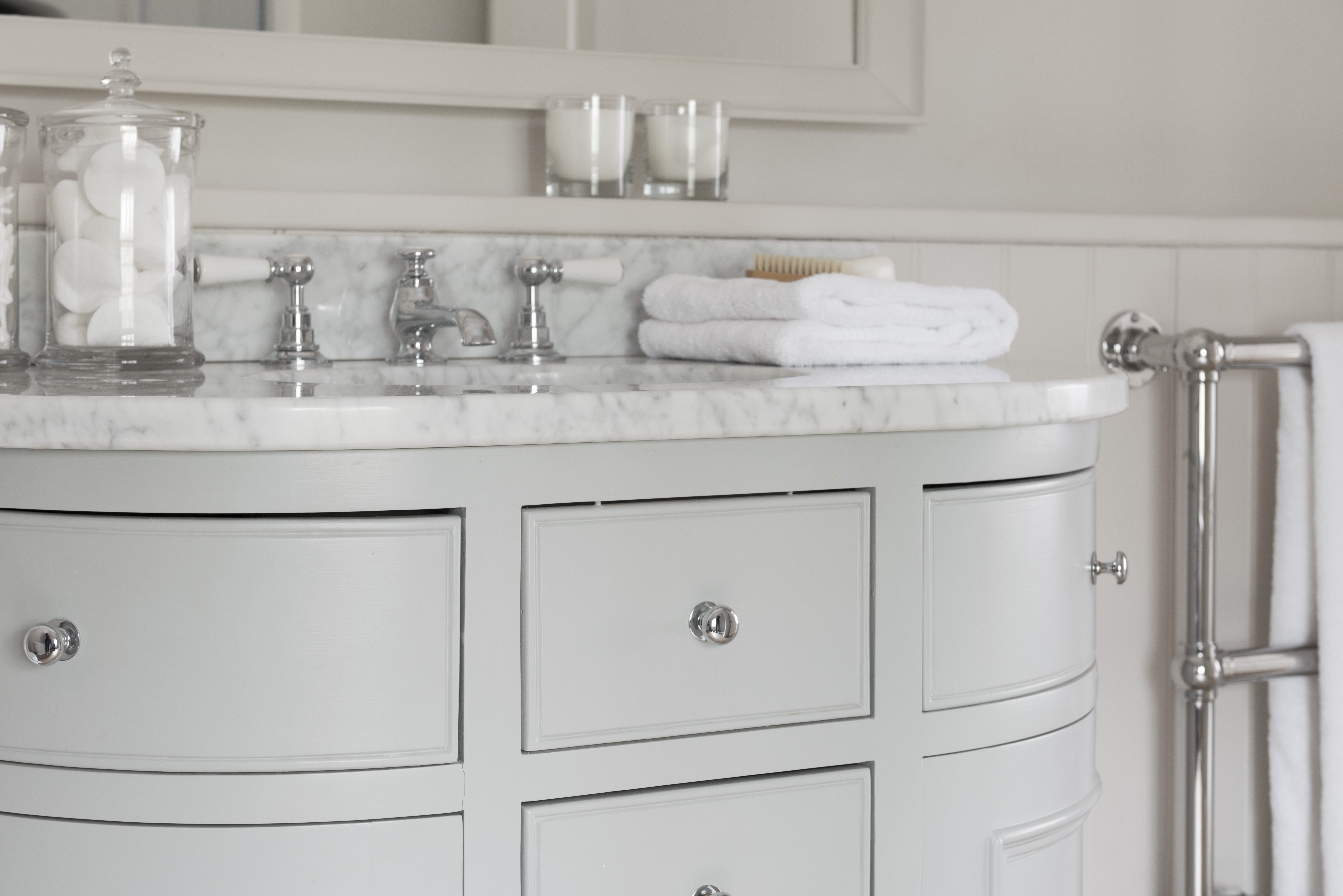 This Chichester washstand is an incredibly classic piece, combining marble and a timeless, painted finish with curved cabinetry and all the refined joinery details you’ll find in our kitchens....