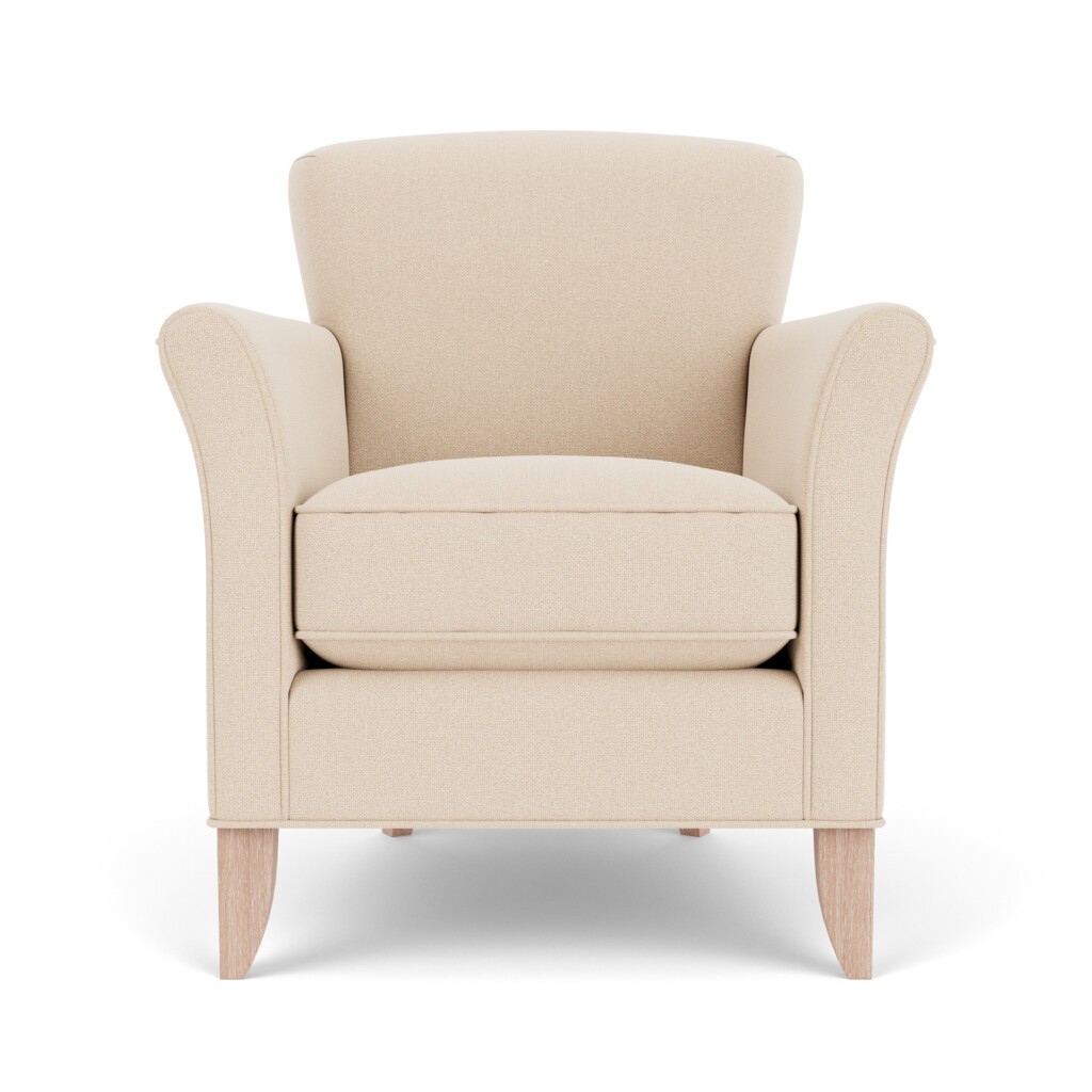 Ce fauteuil classique s'adapte à toutes les pièces et à tous les styles de maison. Le dossier bas lui permet de se glisser dans les petits espaces, tandis que le coussin d'assise profond et les accoudoirs à enroulement le rendent parfait pour s'installer avec un bon livre. Matilda repose sur des pieds en chêne évasés et est tapissé à la main dans le tissu de votre choix.