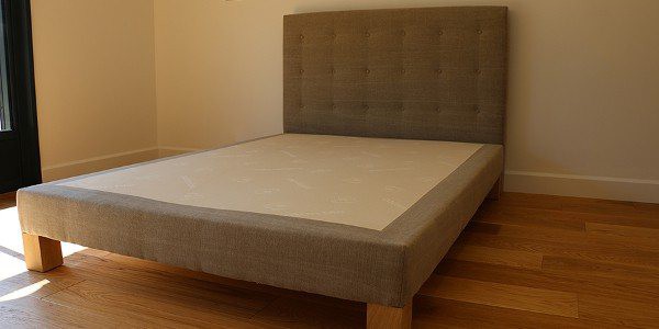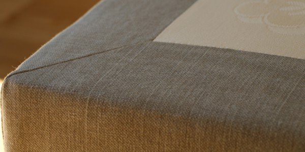 Sommier déco tapissier à lattes Épicéa non traité Coutil Lin/Coton Matelassage Biolaine® Finition Coton Bio