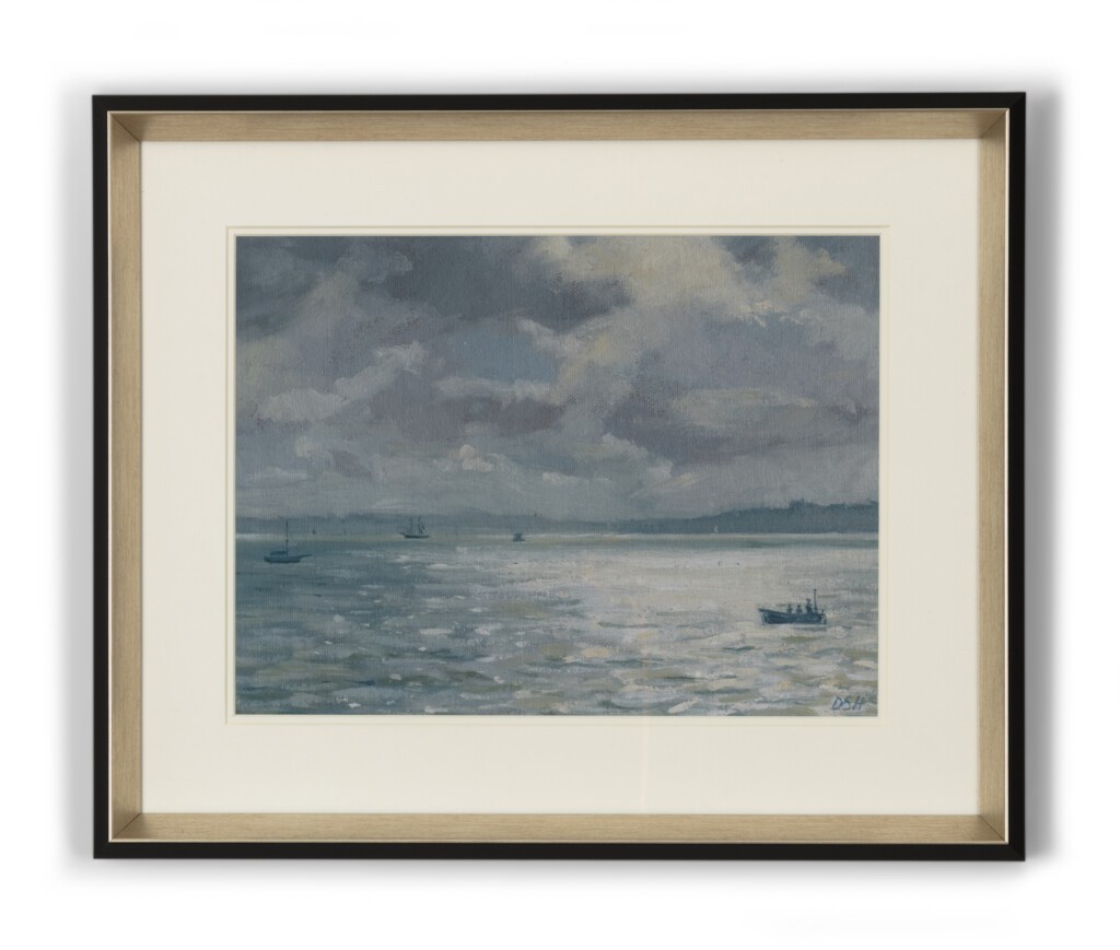 Faisant partie d'une série de quatre tirages représentant diverses scènes côtières des environs du village de St Mawes en Cornouailles, cette peinture a été créée pour nous par l'artiste Daisy Sims-Hilditch - dont la famille visite la région depuis son enfance - avec l'attention qu'elle porte aux effets fugaces de la lumière naturelle. Douce et brumeuse, cette scène est merveilleusement apaisante.