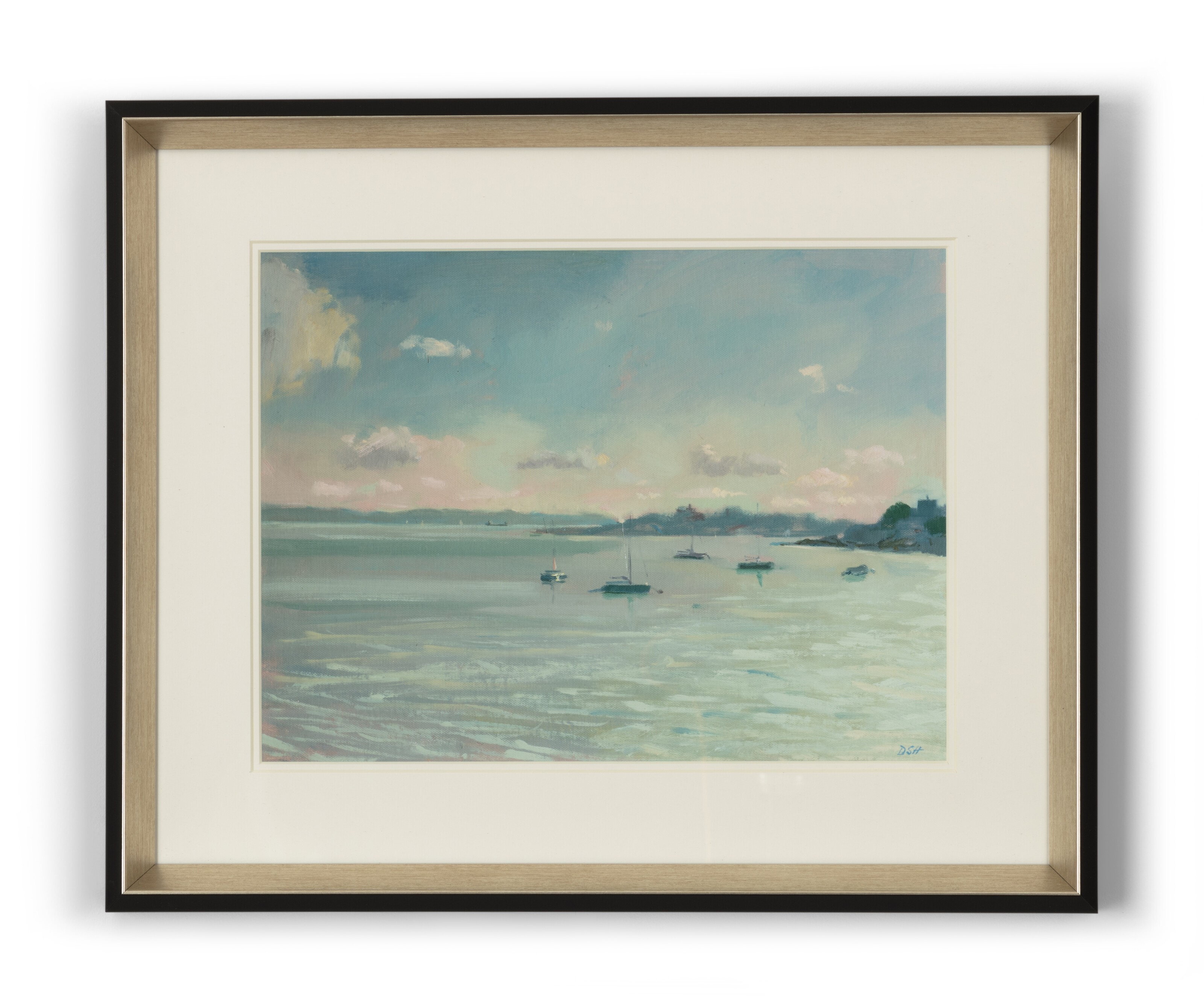 Faisant partie d'une série de quatre tirages représentant diverses scènes côtières des environs du village de St Mawes en Cornouailles, cette peinture a été créée pour nous par l'artiste Daisy Sims-Hilditch - dont la famille visite la région depuis son enfance - avec l'attention qu'elle porte aux effets fugaces de la lumière naturelle. Douce et brumeuse, cette scène est merveilleusement apaisante.