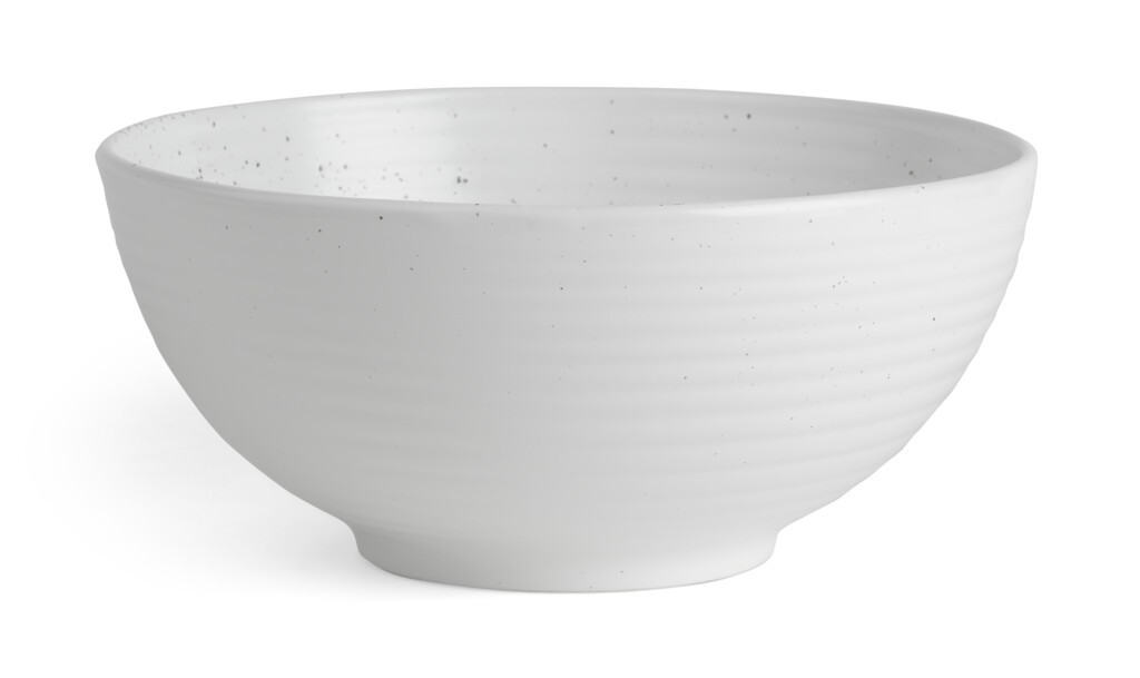 Tout dans Lowther est question de texture. Parcourue de légers sillons avec un fond blanc cassé délicatement moucheté de brun foncé, chaque pièce semble tout droit retirée du tour du potier. Ce service est parfait pour une table au charme contemporain et décontracté. Peu haut, ce saladier est idéal pour servir une salade de fruit le matin ou de la soupe ou quelques pâtes le soir.