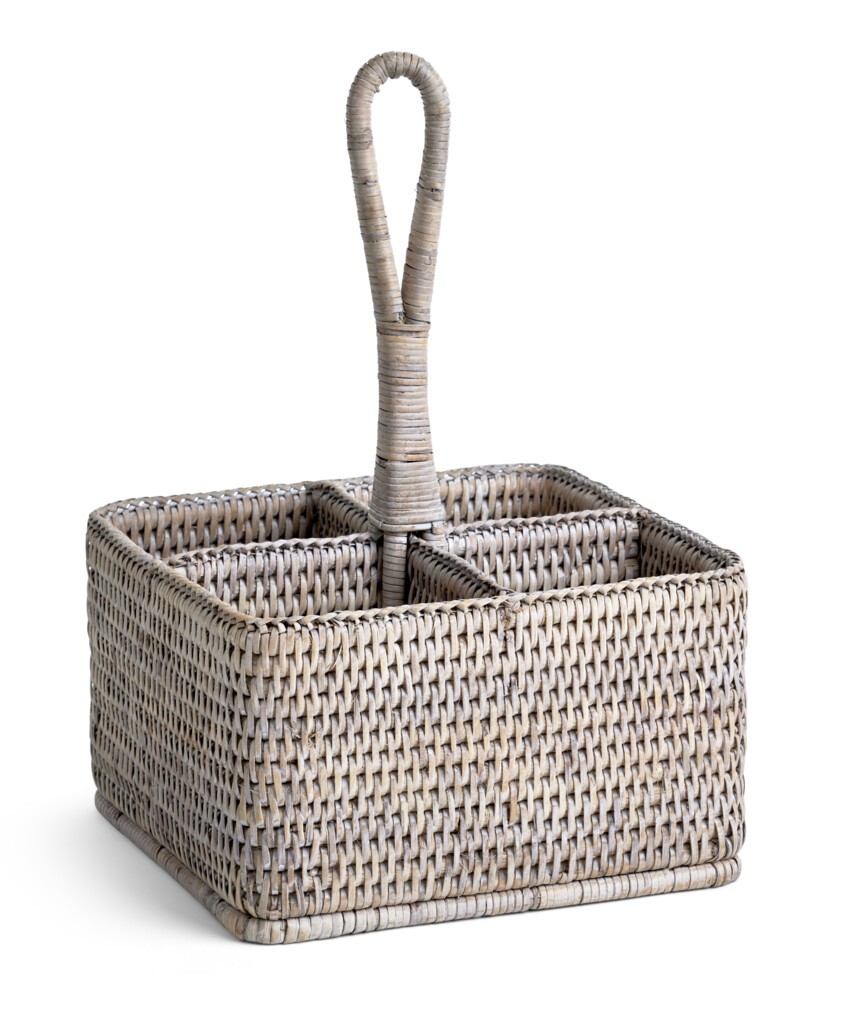 Le rotin traditionnel est remis au goût du jour dans ce magnifique panier à condiments et à couverts, à la fois anguleux et tactile. Conçu pour être utilisé à table, c'est le mariage parfait d'un matériau rustique avec une finition contemporaine, tout en conservant son caractère essentiel.