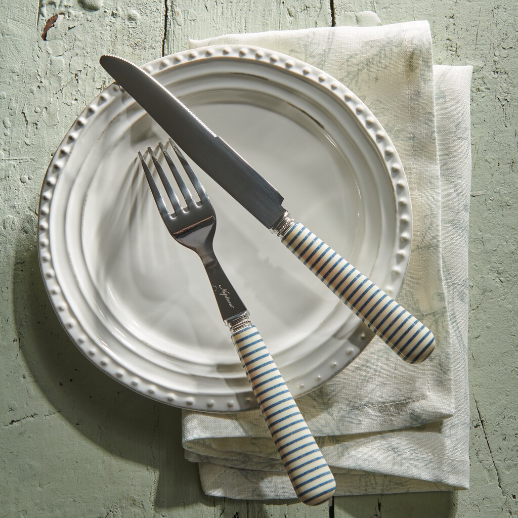 Certains couverts sont faits pour les grandes occasions, d'autres, comme notre Salcombe, sont faits pour les dîners de tous les jours et les réunions décontractées. Cela ne veut pas dire qu'ils ne peuvent pas être spéciaux, et avec ses poignées classiques à rayures bretonnes combinées à un acier inoxydable solide et facile à entretenir, et une sensation parfaitement équilibrée dans la main, le Salcombe élève vraiment le quotidien.