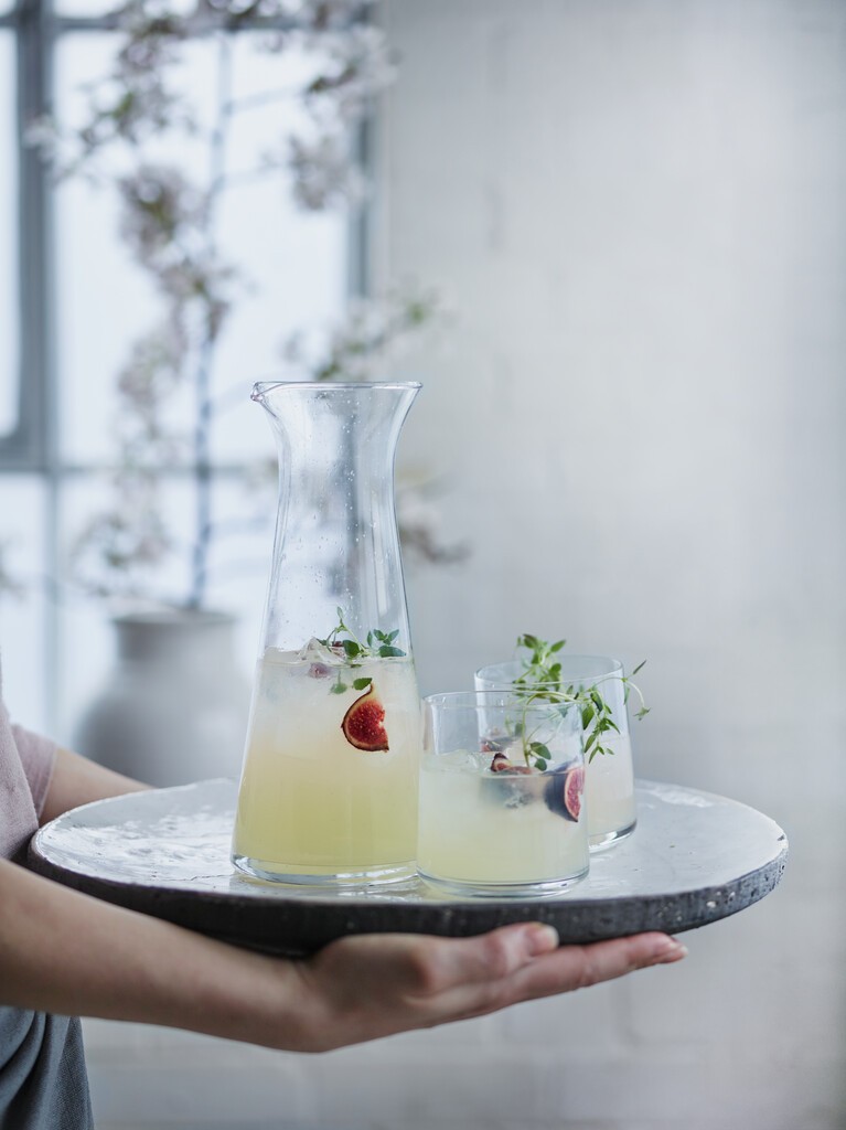La carafe Ella a le poids et l'aspect du verre recyclé. Mais avec sa forme contemporaine de carafe et ses centaines de minuscules bulles d'air emprisonnées - comme des gouttes de pluie sur une vitre - elle est un peu plus élégante. Et lorsque vous ne l'utilisez pas comme carafe, elle fait un vase intéressant.