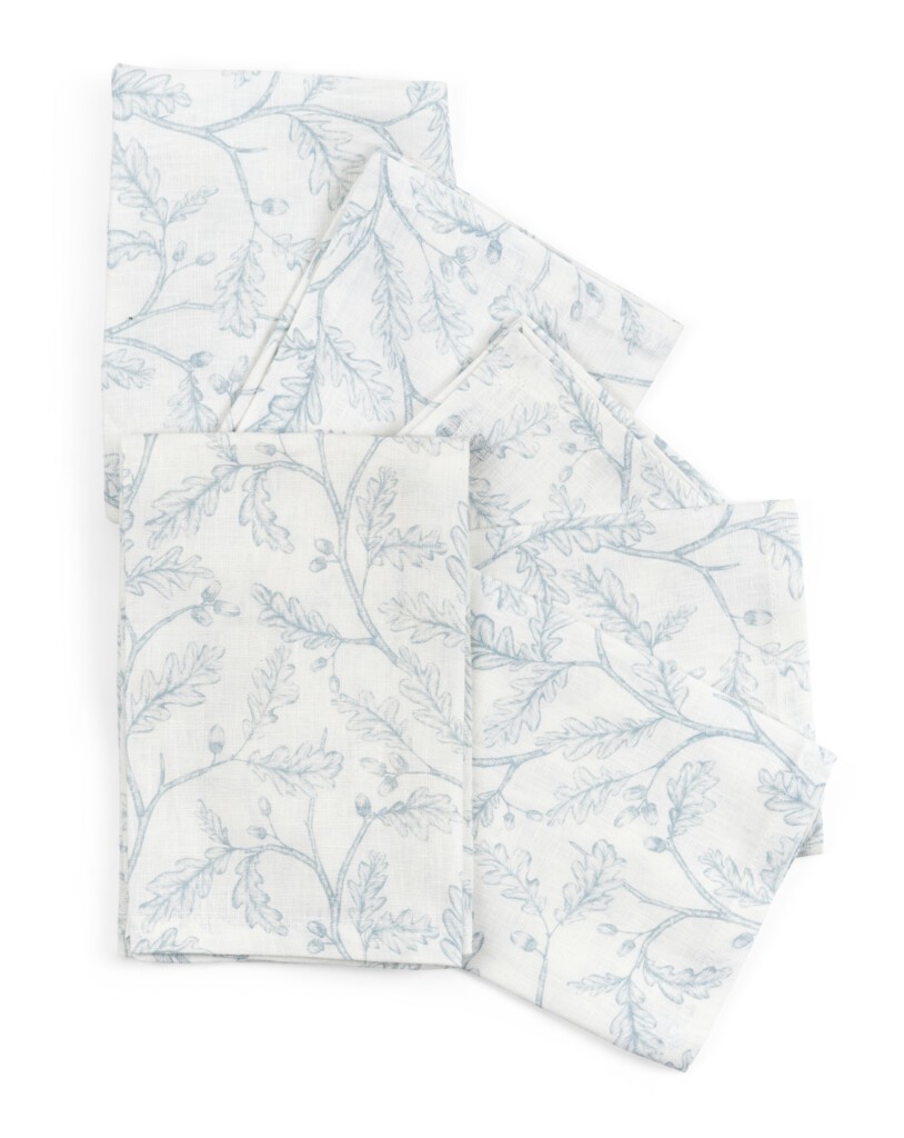 Cet ensemble de six serviettes de table, joliment ornées par sérigraphie de notre motif Francesca en Flax Blue, est présenté dans une pochette à cordon coordonnée. Chaque serviette pré-repassée est un généreux carré de 45 x 45 cm fini par un fin ourlet de 1,5 cm.