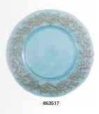 Assiette en verre turquoise avec bord corail doré, diam. 33 cm, réf. 863517, Aulica