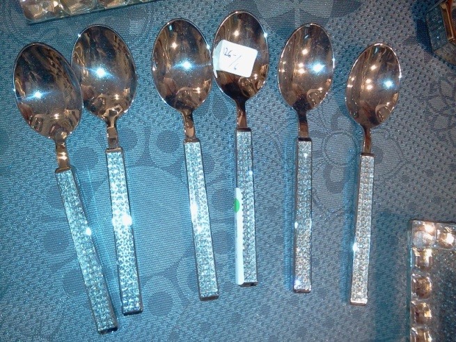 Ensemble de 6 cuillères à dessert Luxe, manche avec des strass, Aulica