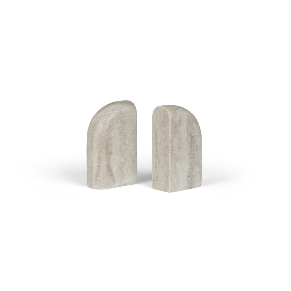 Chaque motif Malborough est esquissé sur du marbre massif, sculpté à la main et poli par d'habiles tailleurs de pierre en Inde. Caractérisée par ses veines uniques et ses teintes grises et brunes, la collection met en valeur la beauté naturelle du marbre. Utilisez ces serre-livres arrondis pour donner de la profondeur et de l'intérêt à vos étagères ou comme cadeau idéal.